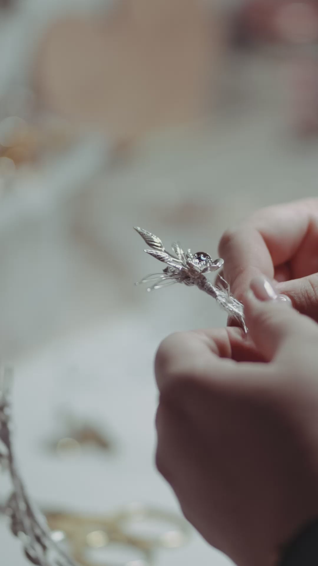 Durante la creación de tu tocado, te mantendremos al tanto de cada paso: te enviamos imágenes, videos, y si lo deseas, haremos videollamadas para que puedas ver el avance en directo. Además, ofrecemos una opción especial para nuestras clientas más detallistas: te enviamos el tocado en su versión sin finalizar, para que puedas probarlo en casa y nos digas si hay algo que ajustar.